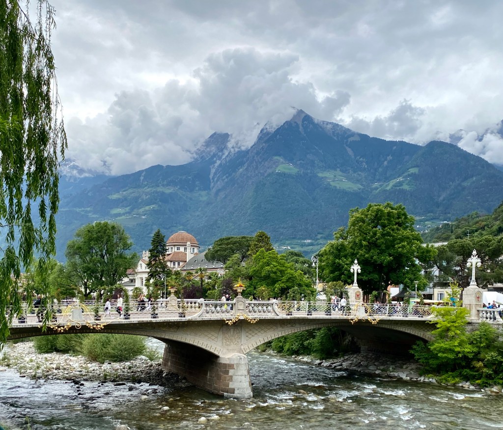 Meran, die historische Kurstadt an der Passer, ist geprägt von ausgedehnten Parks und grünen Promenaden, von botanischen Gärten und zahlreichen Wasserläufen. Die Stadt besticht durch die alpin-mediterrane Atmosphäre und das urbane Flair in der Altstadt, zwischen mittelalterlichen Laubengängen und den Prunkbauten der Belle Époque. Die schneebedeckten Gipfel der Gletscher thronen am Horizont der Palmen entlang der Passerpromenade und über den exotischen Pflanzen der preisgekrönten Gärten von Schloss Trauttmansdorff.