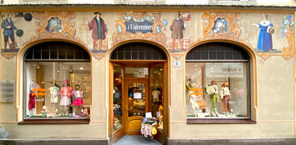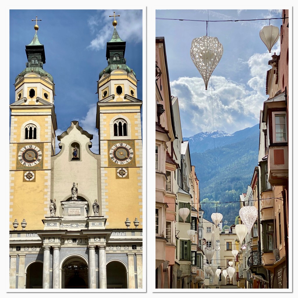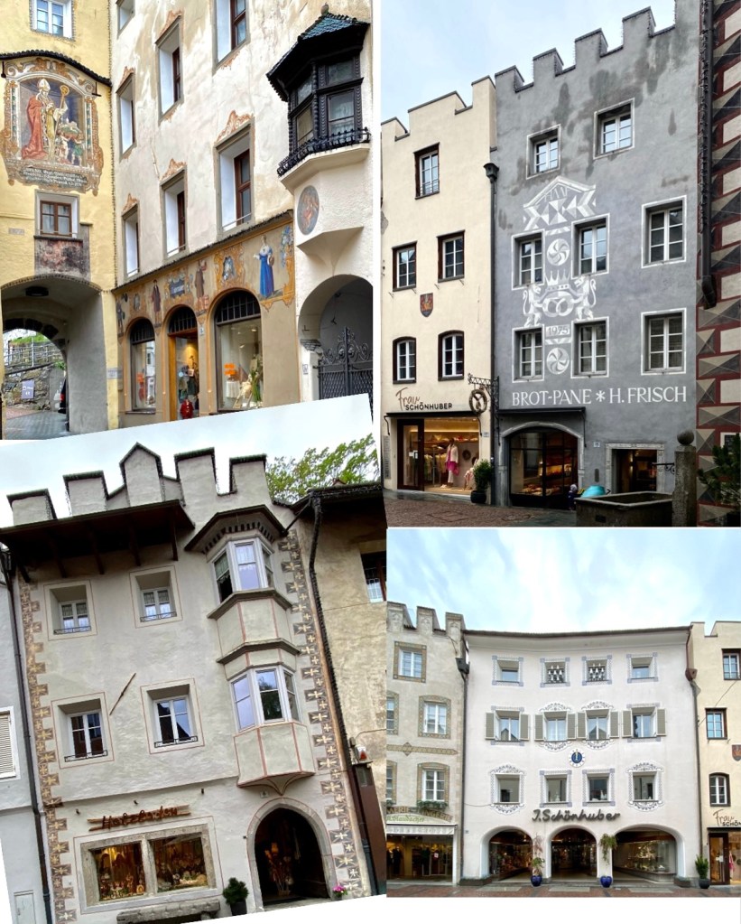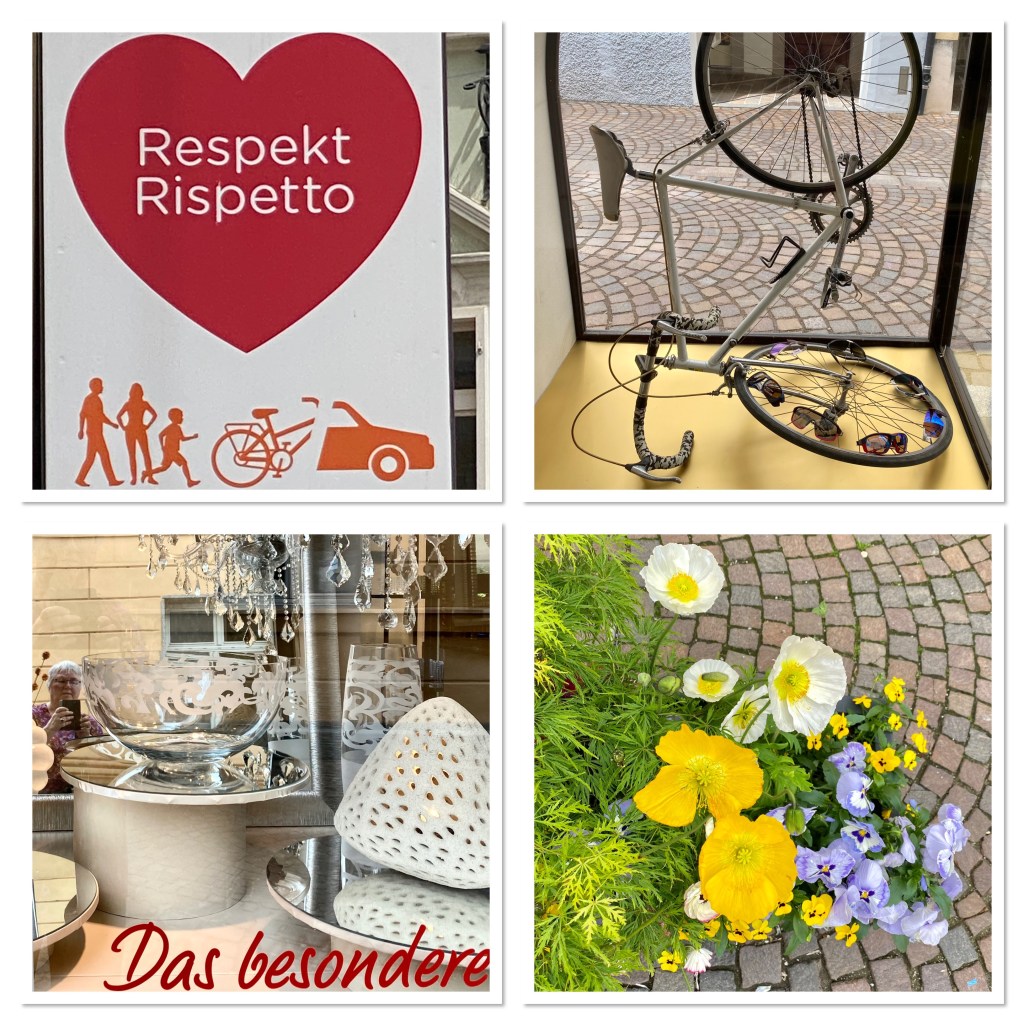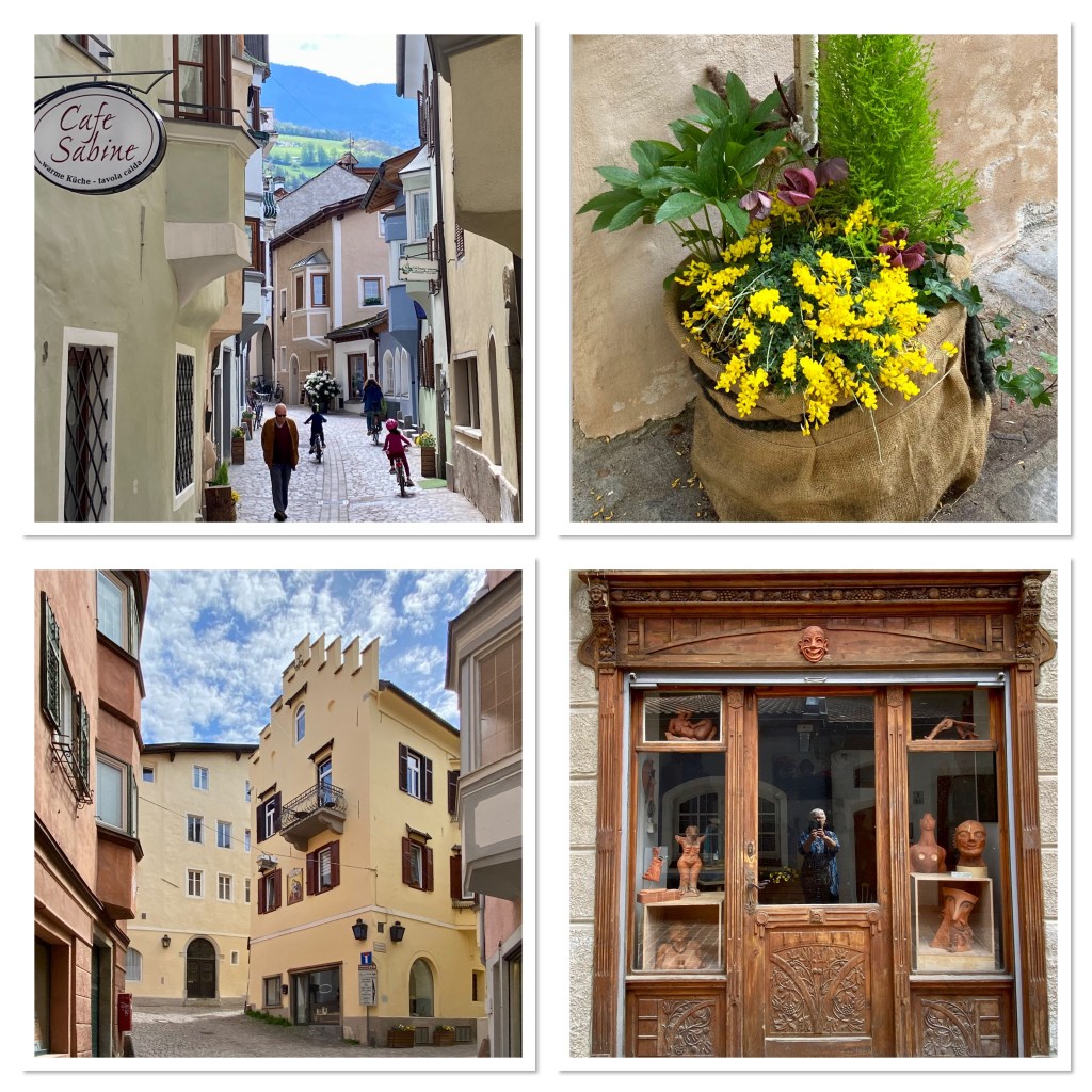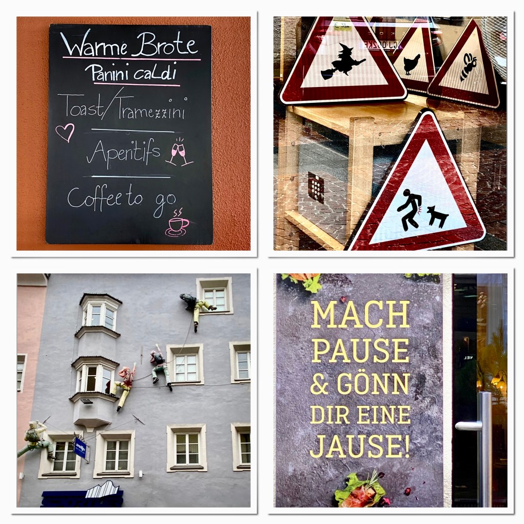 Jaaaa … eine Tüte voll mit Leckerli musste einfach mal sein 😯😉🙃Sowas schönes 😃Ich bin hin und weg von diesem „Tante-Emma-Laden“DIE Entdeckung in der Altstadt ….Unten links ein Winter-Wunderland-Bild aus dem Hotelprospekt, unten rechts der Blick auf die Burg aus meinem Fenster ….Vorher muss ich noch vom Hotel Blitzburg berichten … die Sesselbezüge haben mich totaal geflasht … ich hätte die Teile am liebsten mitgenommen 😂😂😂Ich fahre jetzt nach Bozen …. die restlichen Bruneck-Fotos blogge ich dann heute Abend, aber die Zimmermädchen scharren vor meiner Tür mit den Hufen – ich muss jetzt das Zimmer räumen 😄Hier geht es hoch zur Burg … es ist keine Saison … das Museum hat geschlossen 😠Von welcher Seite man sich Bruneck im Herzen des grünen Pustertals auch nähern mag, immer erblickt man zuerst die schöne, große Bischofsburg, Schloss Bruneck. Sie thront auf dem Haupte eines grünen Hügels und beinhaltet das Messner Mountain Museum RIPA, welches den Bergvölkern dieser Welt gewidmet ist.RAVIOLI TIROLESI Tiroler Schlutzkrapfen mit Butter, Salbei und Parmesan € 11.00 Auch hier … wunderbare alte Türen ….Überall Regenschirme ☔️ Viele Häuser haben BemalungDurch dieses Tor bin ich in die Altstadt gegangen ….Bruneck liegt nur 35 km von Brixen entfernt, aber die Altstadt ist völlig anders ….Die Kleinstadt Bruneck (16.500 Einwohner) ist der geografische, kulturelle und wirtschaftliche Mittelpunkt des Pustertales. Im Jahr 2009 wurde Bruneck zur lebenswertesten Kleinstadt Italiens gekürt.Vom Pustertal hab ich wenig gesehen, die Wolken hingen zu tief …. aber ich habe mich auf den Weg in die Altstadt von Bruneck gemacht … hier der „Graben“, die Hauptstrasse