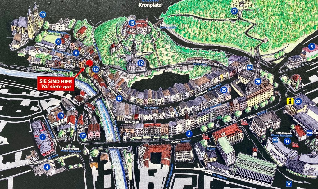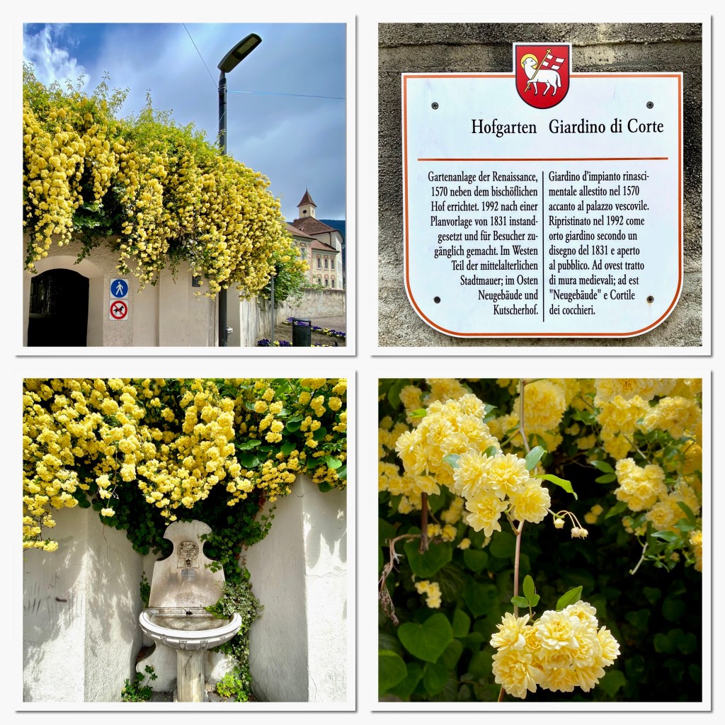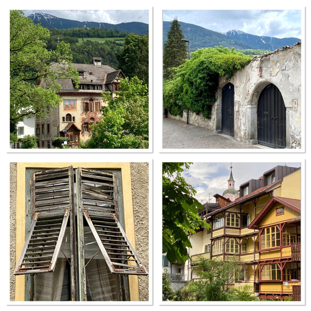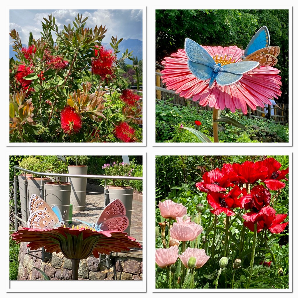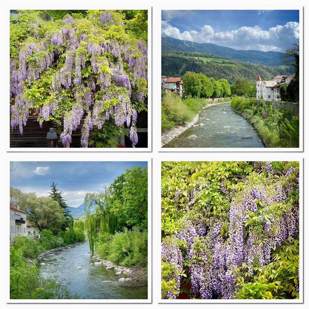 Letzte Eindrücke aus MeranMein letzter Spaziergang durch Meran – die LaubengasseZurück in Meran … das Jugendstil-Theater im AbendlichtDas Dorf liegt oberhalb von Bozen, der Blick runter ist super !Kleiner Ausflug nach Dorf TirolIch hatte mich beschwert, das Zimmermädchen hatte meine Zimmertür sperrangelweit offentstehen gelassen …. das war die Reaktion 👍Meine Zimmerdecke ist ein Sternenhimmel 😊Ein kleines, schnuckeliges Gebäude mit 12 GästezimmernMein Hotel ist ein Boutique-Hotel … zentraler gelegen geht nicht … gegenüber vom KurhausSo, das war’s jetzt mit der BotanikOh, ich liebe diese alten Plakate !Das Touriseum habe ich nur gestreift ….Schmeckt auch mit frischen oder TK-Beeren oder anderen Früchten aus dem Glas.Sehr lecker !Meran und im Besonderen Schloss Trauttmansdorff zählten zu den bevorzugten Destinationen der reisefreudigen Kaiserin Elisabeth on Österreich-Ungarn. Zweimal – 1870 und 1889 – weilte die Kaiserin, auch Sisi (oder fälschlich „Sissi“) genannt, dort auf Winterkur. In demselben Jahr erlebte Meran seinen ersten, vergleichsweise großen Ansturm an Wintergästen: Es begann der Aufstieg Merans zum Kurort von europäischem Rang.Die Gärten von Schloss Trauttmansdorff liegen am östlichen Stadtrand von Meran. Der Botanische Garten der Kurstadt Meran nimmt eine Fläche von rund zwölf Hektar ein. Natur- und Kulturlandschaften aus aller Welt, botanische Raritäten, Themengärten sowie lokale Vegetationsbilder des Landes Südtirols bilden die Schwerpunkte der Gartengestaltung. Im Vergleich zu vielen klassischen botanischen Gärten, die in der Ebene liegen, erstrecken sich die Gärten rund um das Schloss über einen Höhenunterschied von rund 100 Metern, aber mit 2 Fahrstühlen! Mit ca. 400.000 Besuchern pro Gartensaison steht der 2001 eröffnete botanische Garten an der Spitze der meistbesuchten Freizeiteinrichtungen Südtirols.Sonntagsausflug bei bestem Wetter in den Botanischen GartenEin Hauch von Sonne, als ich in Meran ankomme …Naturns auf der Rückfahrt … unten: das Wartehäuschen des Busbahnhofs ….. oben: ein Leckerli um die Wartezeit zu verkürzen ….Beim Feuer machen hätte ich gerne zugeschaut ….Unsere Vorfahren wussten die Natur zu nutzen !So war er wohl bekleidet & ausgerüstet.Im Gebäude wird vieles aus der „Ötzi-Zeit“ anschaulich erklärtDas Aussengelände ist liebevoll gestaltet – leider findet keine Vorführung (z.B. Feuer machen) statt.Mein Ziel heute …. es ist echt noch keine Saison … außer mir ist nur ein Ehepaar dort … es ist Samstag Nachmittag … und es regnet ….Ich war vor 25 Jahren schon einmal hier … und hatte es in allerbester Erinnerung !Die Landschaft im Schnalstal ist wunderbar Ein „Speck-Shop“ – Speck ist in Südtirol feinster Schinken …Die Löwenmäulchen mag ich besonders 😉Leider nieselt es …. und 16 Grad kann ungemütlich sein …. ich bin auf dem Weg ins Schnalstal und warte auf den Anschluss-BusWochenmarkt – Samstag – in NaturnsDurch die Innenstadt zu schlendern macht Freude Belle Epoque – das KurhausDie alte Postbrücke, ein Dreh- und Angelpunkt der Stadt.Ein Spaziergang entlang der PasserIch fange mal mit Sissi & dem Elisabeth-Park an ….Ich bin gestern hier eingetrudelt …..