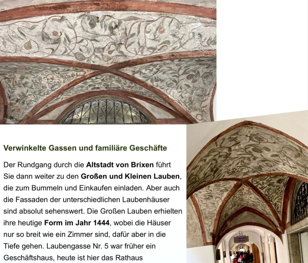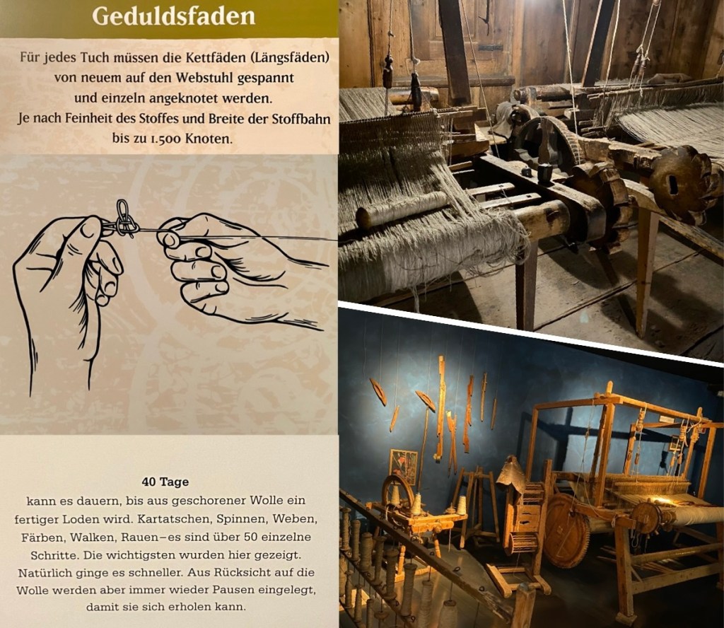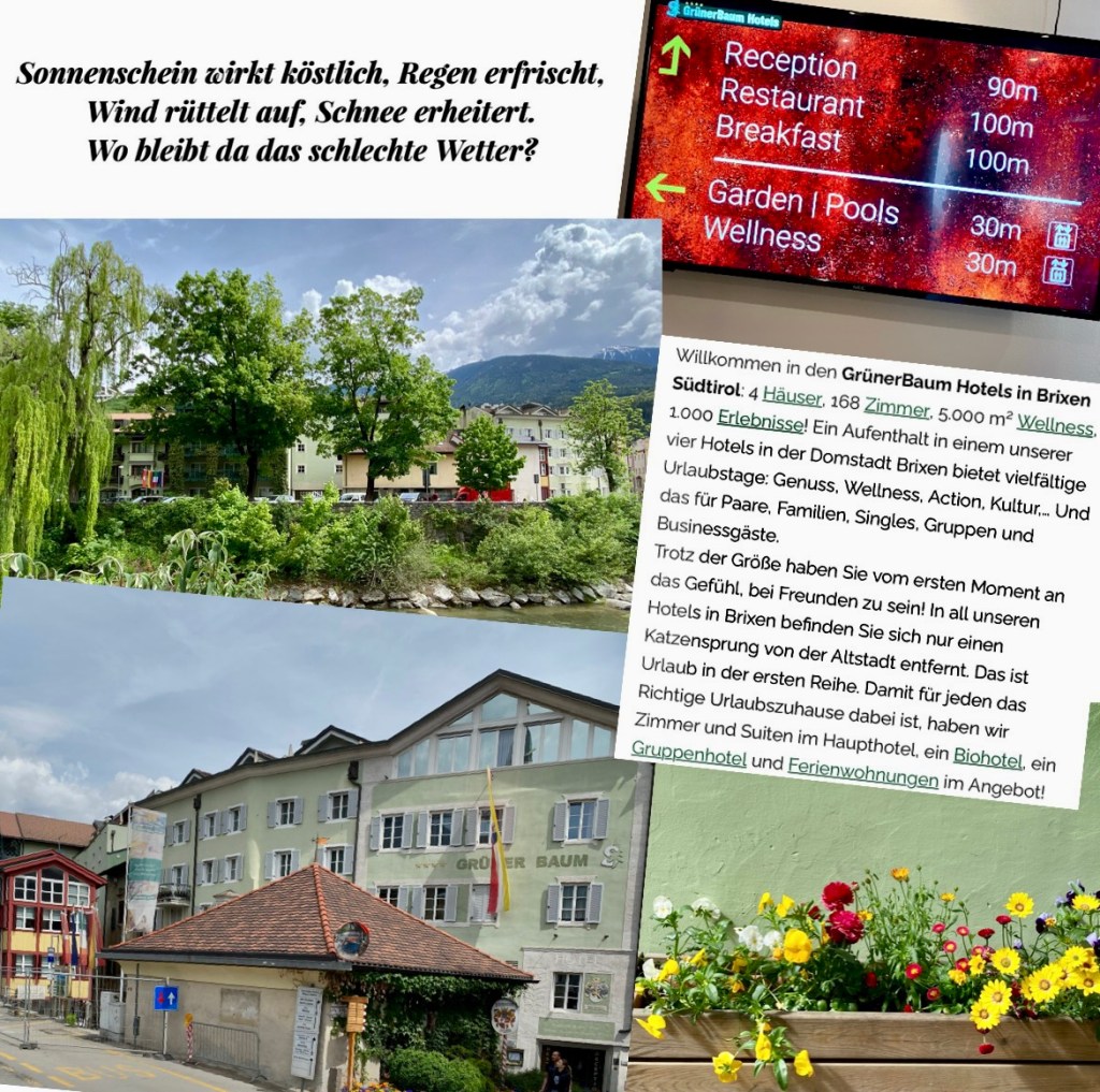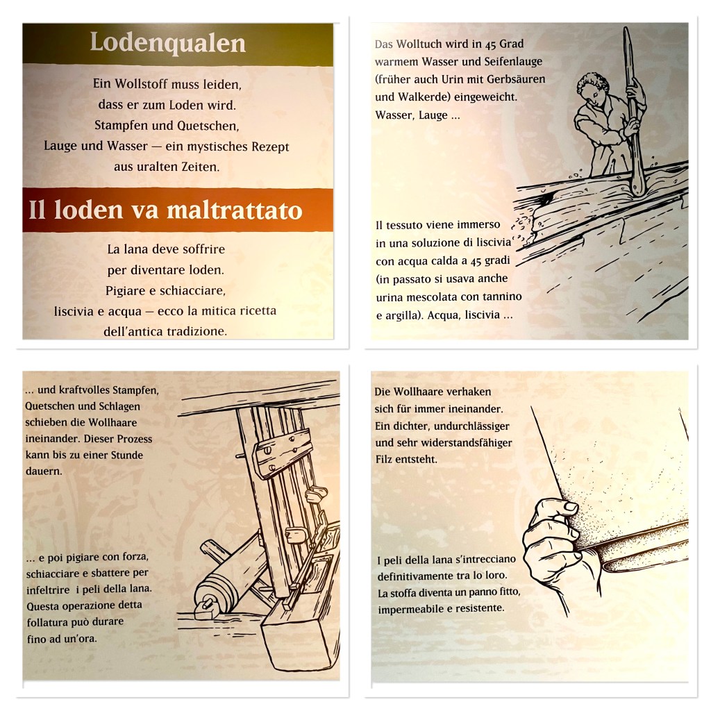 Also der Blick in die Wetterkarte erfreut mich nicht …. das soll wohl so bleiben ….Die saftige Berta und Süsskartoffel-Pommes mit Avocadocreme sind eine gute Wahl 👍Hunger …. es gibt nur ein Burger-Bistro – es gibt auch noch eine Schau-Käserei, ein Käse-Museum, einen Delikatessen- & Käseladen, ein „Loden-Hotel“ …. und mehrere andere Attraktionen …. aber ich habe Hunger ….Das Grün gefällt mir sehr !!! Aber ich bin tapfer und beherrsche mich …. Ich müsste es ja auch 3 Wochen mit mir rumschleppen 🙄😯😉Der Begriff Loden ist seit dem 10. Jahrhundert bekannt. In der althochdeutschen Sprache steht „Lodo“ für „grobes Tuch“. Möglicherweise ist der Name auch auf das mittelhochdeutsche und altnordische „Lodi“ zurückzuführen, was mit „Mantel“ oder „zottiger Mantel“ übersetzt werden kann.Walkstoffe sind in Leinwand- oder Köperbindung gewebte Textilien, deren Oberflächen durch Walken (Drücken, Schieben, Stauchen, Pressen und Kneten in warmen, schwach alkalischen oder sauren Bädern) so verfilzt werden, dass die ursprüngliche Webbindung kaum noch oder gar nicht mehr zu erkennen ist. Im Gegensatz zum Filz wird jedoch gewebter Stoff verarbeitet. Bis ins 19. Jahrhundert wurden Walkstoffe Tuch genannt.130 Stunden dauert es, um mit einem Spinnrad die Wolle eines einzigen Tiroler Bergschafs (1,5 kg) zu verspinnen ! Das Spinnrad galt als wichtigster Besitz einer Frau. Brachte sie bei der Hochzeit ihre Habe ins Haus des Bräutigams, lag es als Krönung obenauf. Am Spinnrad zu sitzen war nicht nur notwendige Arbeit. An langen Winterabenden vertrieb es auch die Zeit. Wie sich diese wichtigen Begriffe & Redewendungen doch in unserer Sprache erhalten haben ….Im ersten Raum bekommt man die Naturgewalten Sturm, Kälte, Regen usw hautnah zu spüren … toll gemacht … sich in Filz und Loden zu kleiden hat in den Bergen lange Tradition. Bedenkt man all die praktischen Vorteile dieser Wollmaterialien, steht es außer Frage, warum sie vor allem in klimatisch unwirtlichen Regionen seit Jahrhunderten zu Jacke, Röcken, Hosen, Decken und Tüchern verarbeitet werden.Willkommen in der Lodenwelt Hinter dieser Tür beginnt die faszinierende Geschichte des Lodens. Sie geraten in Wind und Wetter und spüren, wie wichtig eine warme feste Kleidung für die Bergbewohner war. Sie steigen hinauf zu einer Alm geraten in eine Schafherde, können beim Schafscheren zusehen und erfahren alles über das Spinnen Weben und Walken. Jeder der acht Räume des Parcours steckt voller Überraschungen ….Es gibt viel zu sehen ….Ich erinnere mich an die Bus-Haltestelle: Lodenwelt auf halber Strecke gestern zwischen Brixen & BruneckOch …. nööö …. DAS verdirbt mir irgendwie die Laune …. 😠So …. und jetzt fahre ich nach BruneckDie Sonne scheint geradeDer Kreuzgang neben dem Dom ist wunderbar !!!!Das Beste zum Schluss ….Eine Dependance, der Hotelgarten und der Wellness-Bereich ….Mein Zimmer ist eines der günstigsten …Der Spruch steht an der Rezeption … das Hotel ist riesig, ein Fuchsbau über mehrere Häuser, durch Gänge im Keller verbunden … sehr geschickt gestaltet, aber verwirrend … ein ganzes Stadtviertel könnte man fast sagen 😃😉Hotel Grüner Baum liegt im Stadtteil StufelsBei dem ersten Besuch in diesem Museum war ich berührt von der sorgfältigen Auswahl der Ausstellungsstücke, dem respektvollen Umgang mit dem zu „Bewahrenden“ und dem Spannungsverhältnis, das sich ergibt durch das Aufeinandertreffen zeitgeistiger Museumskonzeption und -architektur mit den „Dingen“, die seit vielen Generationen gesammelt und archiviert wurden. Zudem beeindruckte die Lebendigkeit des Museums, bedingt durch seine Einbettung in dieses Haus. Ein sensibel restauriertes altes Stadthaus mit betriebiger Straße zur einen und einem von der Straße abgewandten, alten Garten mit Blumen, Sträuchern und Bäumen zur anderen Seite. Im linken hintern Teil des Gartens ein großer Ginkgobaum. – Lies Bielowski zur Gestaltung der Ginkgo-Fenster im Jahr 2006unten links: der HI. Rochus, Schutzpatron gegen Pest und SeuchenAusgesprochen liebevoll präsentiertEin wunderbares Museum !!!Lüneburger Anzeiger 👍In der ganzen Stadt sind Trinkwasser-Brunnen verteilt ….Die Hochzeit zu Kana – mein Favorit 👍Fürstbischof Karl Franz von Lodron ließ um 1800 für die Hofkirche und für seine Wohnräume je eine Jahreskrippe anfertigen. Als Schnitzer wurden Franz Xaver Nissi sowie Augustin Alois und Josef Benedikt Probst beschäftigt. Beide Krippen schildern viele Szenen aus der Heilsgeschichte. Daraus entwickelte sich die umfangreiche Krippensammlung ….Eine Wachskrippe aus der KrippensammlungBlick von oben in die HofkircheIm KaisertraktSpaziergang an der EisackIch habe lange gesucht … endlich entdeckt 👍Farbenprächtige Fassaden, schöne Erker, gemütliche Cafes und exquisite Geschäfte treffen hier zusammen. Das Besondere an den Lauben: sie verlaufen nicht geradlinig sondern verwinkelt, denn sie mussten sowohl auf das ältere Domviertel als auch auf die bereits bestehende Stadtmauer Rücksicht nehmen. Sehr praktisch, wenn es regnet 😄Einige Lauben haben Grafitto-DeckenKöstlich – Garnelen CurryIst mir aufgefallen beim StadtbummelÜberall gibt es etwas zu entdeckenHerrliche alte TürenImpressionen aus der AltstadtDer Weg nördlich um den Dom rum beruhigt … 😉Man ist geblendet ! Eine ganze Weile bin ich ganz alleine im Dom, auch ein Erlebnis …Die Pracht im Dom ist kaum zu überbieten …Der Lebensbrunnen von Martin Rainer (1923 – 2012) auf dem Domplatz von Brixen. Er versinnbildlicht den Lebensweg der Menschen: Die Hand Gottes auf der dem Dom zugewandten Seite sendet das Kind in die Welt aus; selbiges wächst heran und erreicht, auf einer Spirale aufsteigend, den Zenit seines Lebens. Absteigend und älter werdend, kehrt der Mensch schließlich in die Hand Gottes zurück.Der Domplatz im Zentrum der Altstadt. Nr. 18 = Hotel Grüner BaumDom & Domplatz …. mit P