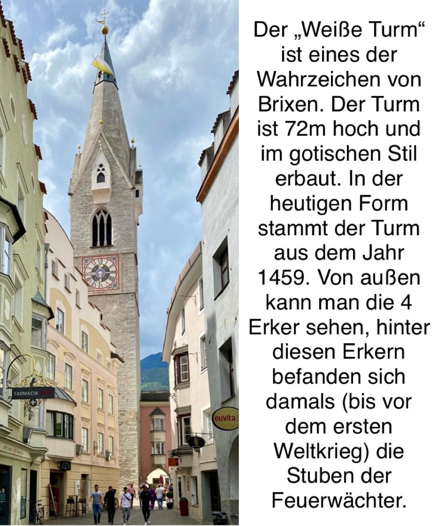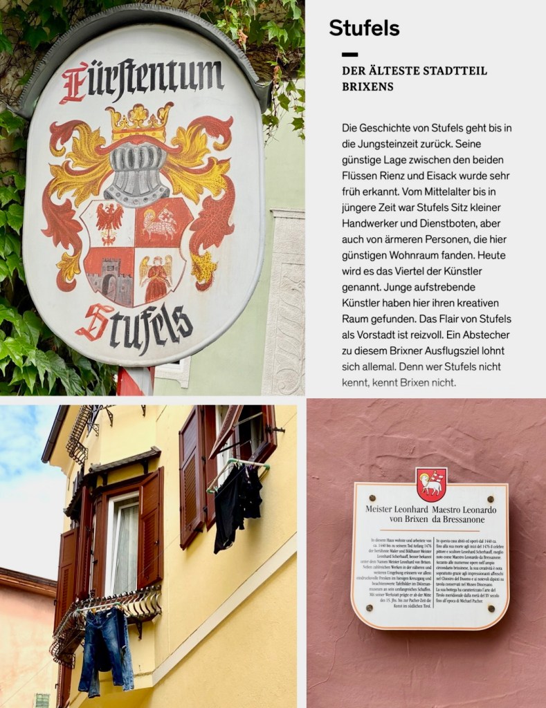 Brixen im Eisacktal (etwa 22.500 Einwohner) ist eine Stadt mit Geschichte. Sie ist die drittgrößte und älteste Stadt Südtirols. Jahrhundertelang war sie ein Zentrum geistigen und kulturellen Schaffens, bis zum Jahre 1803 Sitz der Fürstbischöfe und rund 1000 Jahre lang Bischofssitz.