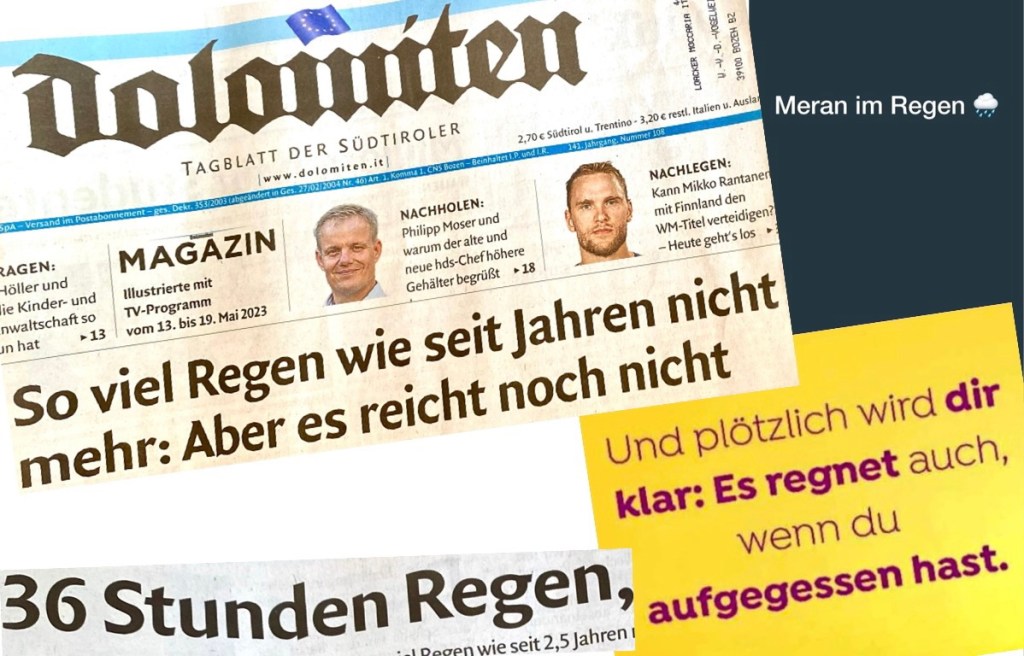 Bein Frühstück die Zeitung gelesen … DAS Titelthema 🤔Brixen … der Blick vom Balkon … Hotel Grüner BaumIn Innsbruck schaffe ich den Umstieg in den Eurocity Richtung Bologna in 12 Minuten – inclusive Fahrkartenkauf am Schalter 👍 auch dieser Zug ist auf die Minute pünktlich 😯Nicht meckern, die Schuhe sind frisch geputzt 😂Die Landschaft mit „Selfie“ 😂Zwischen Rosenheim & KufsteinMein gemütliches AbteilAuf die Minute pünktlich 👍