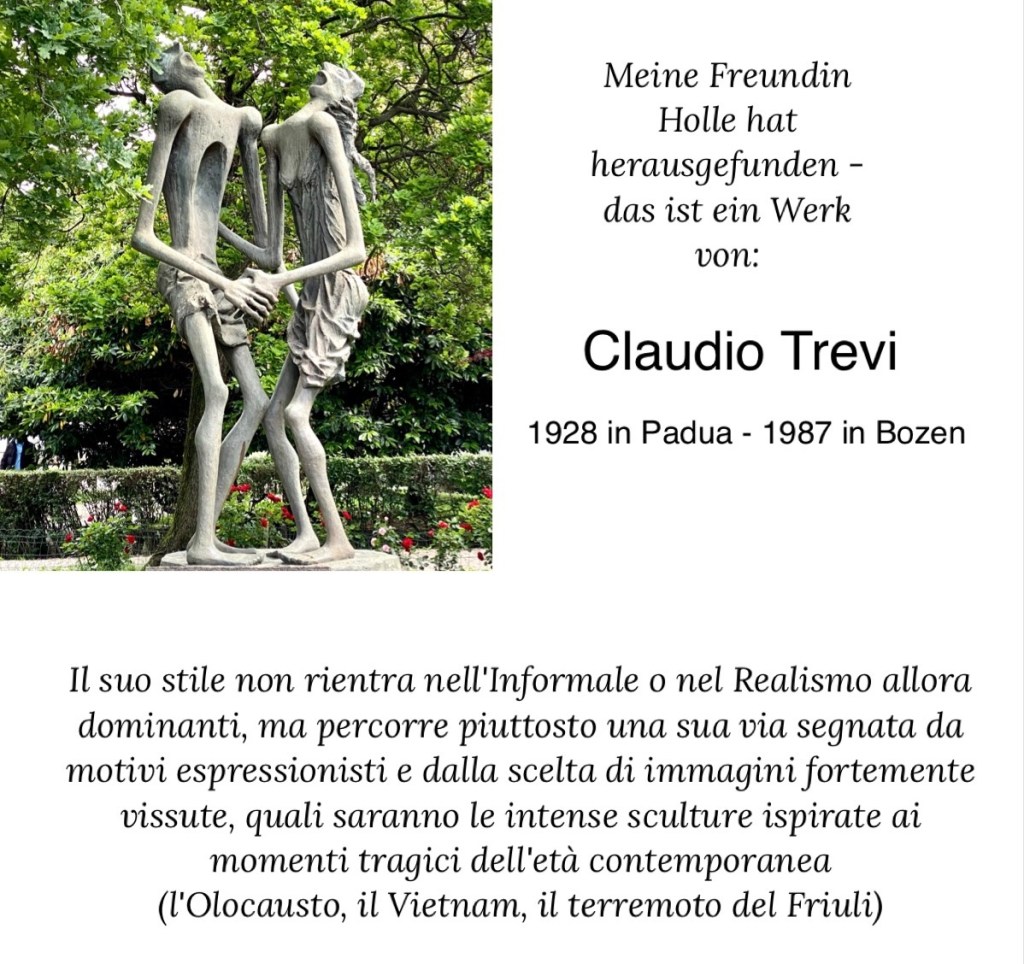Mit dieser Card, die man vom Hotel bekommt kann man alle Öffis benutzen vom Brenner bis Trient und von Müstair (Schweiz) bis zur Grenze bei Innichen … nur für den Eurocity und andere Intercities giltet sie nicht … dafür aber für einige Bergbahnen – und in den Museen ist der Eintritt frei …. SUPER !Ich weiß nicht, wie der Translator funktioniert …. Im Jahre 2010 wurde das 100-jährige Jubiläum des Hauses gefeiert. Im Mittelpunkt standen Musik und Kunst, welche auch bis dahin das Leben im Laurin maßgeblich mitgestaltet haben. Schon in den ersten Jahren des Bestehens waren Gäste der österreichischen Kaiserfamilie und eine Anzahl deutscher Fürsten regelmäßige Besucher. Im Ersten Weltkrieg diente das Haus dem österreich-ungarischen Oberkommando als Stützpunkt.Bar / Frühstücksraum / Fahrstuhl …. Das Parkhotel Laurin ist ein unter Denkmalschutz stehendes Hotel im Stadtzentrum von Bozen in Südtirol. Es wurde 1910 nach Entwürfen der Münchner Architekten Alois und Gustav Ludwig errichtet. Der Baustil verbindet historistische mit Jugendstil-Elementen. Bei seiner Eröffnung im Jahre 1910 war das Laurin eines der modernsten Hotels Europas. Das Parkhotel Laurin ist nach König Laurin aus der TirolerSage König Laurin und sein Rosengarten benannt. Das Hotel gehört seit seiner Entstehung der Bozner Familie Staffler.Meines war eines der preiswerteren ZimmerIch habe noch gar nicht über mein Hotel in Bozen berichtet … ich bin das 4. mal hier abgestiegen; nach 1973, 1999 und 2008 👍👍👍 Es liegt perfekt: 200 m bis zum Hauptbahnhof und 250 m bis zum Waltherplatz, dem Zentrum Bonzens … eines der Zimmermädchen ist aus Afghanistan, der Assistent, als der Safe nicht funktionierte, kam aus Tibet, er hat mir stolz berichtet, dass der Dalai-Lama Lama schon mehrfach hier abgestiegen ist …. und Angela Merkel mit Entourage, als sie wg isländischem Vulkan in Italien gelandet ist und mit Autokolonne heimfuhr 😊Eine Gürteltasche z.B. enthielt einen Klingenkratzer, einen Bohrer, das Bruchstück einer Klinge und eine 7,1 cm lange Ahle. Der ebenfalls enthaltene Feuerschwamm und Spuren von Pyrit sind Bestandteile eines Schlagfeuerzeugs. Zwei mitgeführte Birkenporlinge dienten vermutlich als Heilmittel. Der Birkenporling ist ein Baumpilz. In der Arzneimittelkunde gilt er als blutstillend und entzündungshemmend, ein Aufguss kann gegen Würmer und Magenbeschwerden verwendet werden. Er ist ein natürliches Antibiotikum.Der Name „Otzi“ stammt übrigens vom österreichischen Journalisten Karl Wend, der einen klingenden Namen suchte. Der Name bezieht sich auf den Fundort in den Ötztaler Alpen. Andere Bezeichnungen: der Mann aus dem Eis, Mumie vom Similaun, Ötzi der Eismann oder Mann vom Similaun. Im englischsprachigen Raum sind zusätzlich zum Hauptbegriff Ötzi „Iceman“ und „Frozen Fritz“ gebräuchlich.Es gibt soooo viele Details, die man ermitteln konnte … z.B. Ötzis Blutgruppe ist 0, Rhesusfaktor positiv. Bei Untersuchungen im Jahre 2010 konnten zwar Spuren von Blut an den Wunden festgestellt werden, aber erst die DNA-Analyse brachte Gewissheit. Das ABO-Gen, auf dem die Blutgruppe gespeichert ist, liegt in der DNA auf Chromosom 9. Obwohl das Erbgut des Mannes aus dem Eis nach 5000 Jahren sehr fragmentiert ist, gelang es trotzdem, kleine DNA-Fragmente zu identifizieren, welche die Blutgruppe und den Rhesusfaktor bestimmen.Vor über 5300 Jahren überquerte der Mann das Tisenjoch im Südtiroler Schnalstal, wurde dort ermordet und im Eis natürlich konserviert. Er ist damit älter als die ägyptischen Pyramiden und Stonehenge und das Ergebnis vieler, sehr unwahrscheinlicher Zufälle. Otzi lebte in der Kupferzeit, einer Epoche, die der dusgehenden Steinzeit zugeordnet wird. Er nutzte noch Steingeräte, besaß aber auch schon ein innovatives und sehr wertvolles Kupferbeil. Das Wissen, wie man Metall gewinnt und verarbeitet, war erst vor kurzem aus Kleinasien nach Europa gelangt. Mit dem Kupfer hat das erste Metallzeitalter begonnen.Seit 1998 wird der Fundkomplex „Mann aus dem Eis“ im Südtiroler Archäologiemuseums in Bozen ausgestellt – 1999 hab ich ihn dort schon einmal gesehen …. leider darf man in der gesamten Etage nicht fotografieren, durch ein kleines Guckloch sieht man nur ein bisschen vereiste Haut … damals konnte man die ganze Mumie sehen: Die Mumie lagert in einer speziell entwickelten Kühlkammer und ist durch ein kleines Fenster sichtbar. Die vielfältigen Ausrüstungsgegenstände und Kleidungsstücke wurden aufwändig restauriert und es ist unglaublich, wieviele Erkenntnisse die Wissenschaft daraus gewonnen hat!… und da schaut Ötzi um die Ecke, davon berichte ich morgen ….… an der Talfer / Talavera …Ich bin mit dem Bus durch die Stadt gefahren und an dieser Ecke ausgestiegen …. eine angenehme Wohngegend ohne Touristen … den Künstler konnte ich nicht ermitteln ….Sakrale Kunst des Bozeners Loris CavallariDie Kirche Pius X. ist eine viel zu wenig beachtete Architekturikone der Stadt Bozen und wurde von Armando Ronca geplant.der Hauptbahnhof…. und gleich noch ein paar Impressionen aus Bozen ….Ein paar Fotos vom Rückweg ins Hotel ….Dieses Video von Shimabuko fand ich zumindest …. sagen wir mal: bemerkenswert … der arme Oktopus, aber er durfte Shinkansen fahren, den Tokyo Tower hochfahren und den Fischmarkt besuchen … ob ihm das gefallen hat ….Über 2 Etagen läuft diese AusstellungDas Gebäude finde ich super …. aber mit den Ausstellungen konnte ich gar nichts anfangen 🙃 die komplette 2. Etage ist mit einer Schicht Erde bedeckt, ein Angestellter gräbt fleißig um …. in den Tüten am Spaten darf man Erde mit nach Hause nehmen …. die Gummistiefel unter dem Bild finde ich ja durchaus lustig …… JAAA … ich oute mich hiermit als Kunstbanausin ….Das Gebäude ist ein 54 Meter langer Kubus mit einer Höhe von 25 Metern und einer Breite von 23 Metern. Die transparenten Stirnseiten sind Schaufenster zur Stadt 