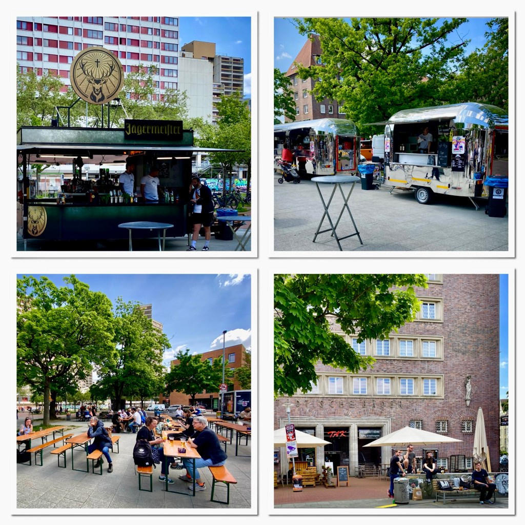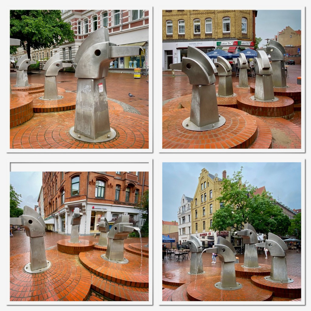 Auf der Lister Meile / Ecke Körtingstrasse wurden die von dem hannoverschen Stadtgestalter und Architekten Gerhard Bünemann 1976 fertiggestellten fünf Edelstahlfiguren auf getreppten Ziegelsteinrosetten installiert. Wenn das Wasser aus den Speiern sprudelt, lassen die sich sogar drehen- ein riesiger und nasser Spaß für kleine und große Kinder….. ich muss nochmal bei Sonnenschein vorbei schauen …