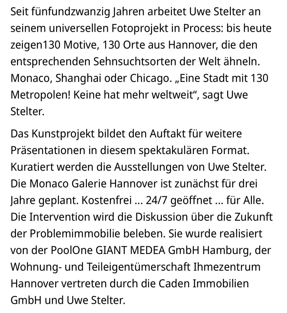 Hannover ist um eine Freiluftgalerie reicher: An der Häuserwand am Gebäude des Ihmezentrums in der Spinnereistr. 3-3a hängen seit Ende April Motive aus der Fotoserie „Eine Stadt“ von Uwe Stelter.