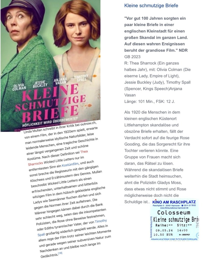 Little Letters), eine Filmkomödie, basiert auf einer wahren Begebenheit. Die Premiere erfolgte im September 2023 beim Toronto International Film Festival.