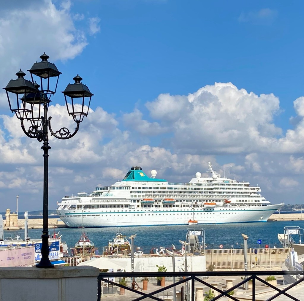 Mitbringsel, die ich mir verkniffen habe … 😎Der Putzeimer vor dem Altar begeistert mich am meisten 😄👍Innen wirkt sie ziemlich düsterEin paar AussendetailsIrgendwie blöd, wenn die Gasse mit der Hauptfassade der Kathedrale so eng ist …Das ist der Stadtstrand, gleich hinter der Altstadt …Es gibt totaaal verwunschene Gebäude – hierin befindet sich das Stadt-Archiv… und stille Gassen …In der Altstadt interessante Hinterhöfe …… überall …Ich stelle fest: die Stadt der Opuntien 😄Die Amera in Gallipoli & wieder tolles Wetter 👍Im Dunkeln sieht man wenig …… es ist eine der meist befahrenen Wasserstrassen weltweitJetzt nähern wir uns der Strasse von MessinaMal wieder ein Traum-Sonnenuntergang 👍👍👍Hier sieht man den KraterAuf gehts Richtung Stromboli – leider am TagHier gibt es viel KeramikGranita ist die Spezialität hier 😋👍Vulcano & Vulcanello in der FerneEinfahrt in den Hafen von LipariAmera by nightDie Rückfahrt zum Sonnenuntergang entlang der Küste mit den SalzgärtenMasala, wo der Wein herkommtOlivenbäume gab es keine auf der Olivenplantage 🤷🏻♀️Lauschige Plätzchen auf der OlivenplantageWer kennt die Kirchen, nennt die Namen …Die Altstadt von Trapani ist wunderschönKleiner AltstadtbummelDie Amera liegt direkt an der Plaza GaribaldiAnkunft in Sizilien