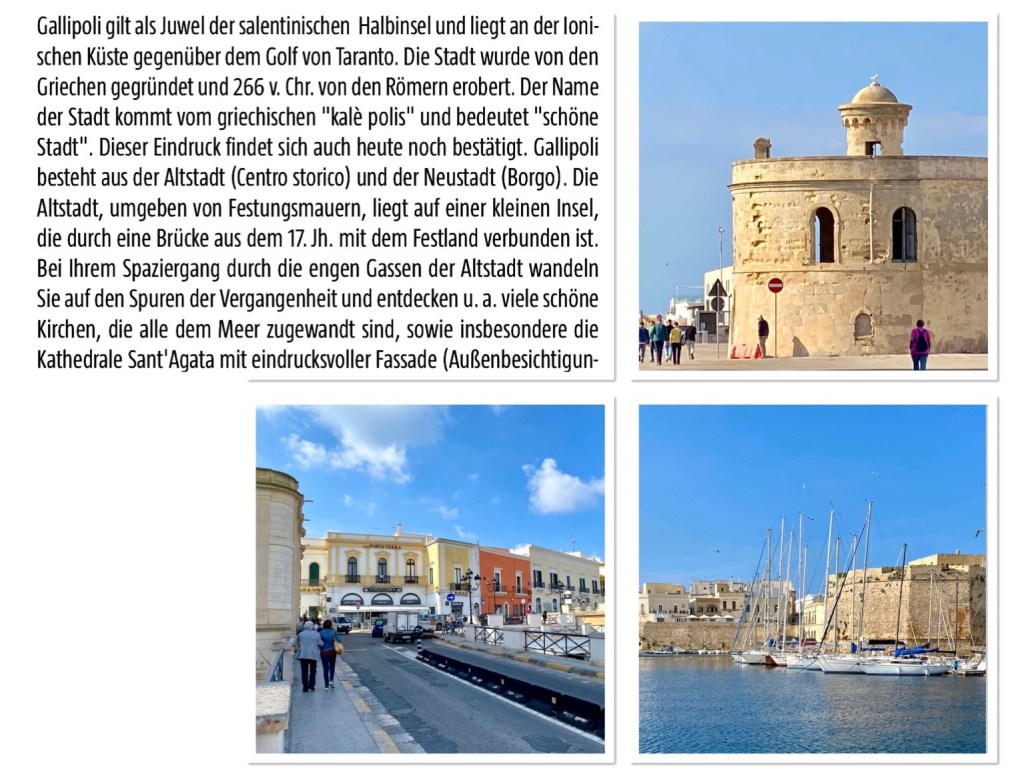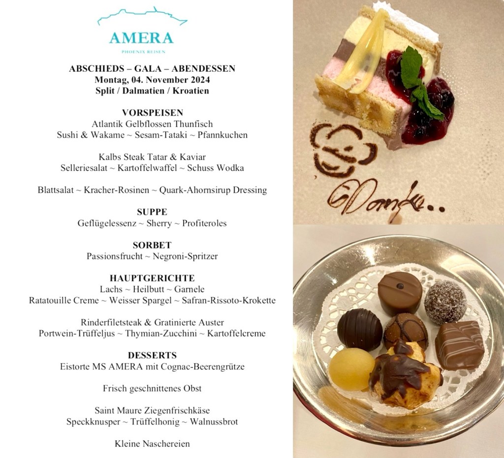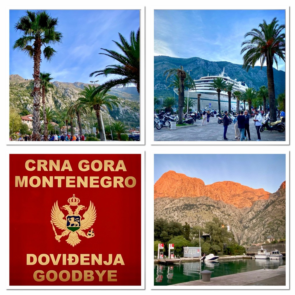 Guckuck … da schaut die Amera in Triest um die Ecke 😃Schief & mit Knick 🙋🏼♀️ 😯 🤷🏻♀️Das wars mit der KreuzfahrtGrosse Abschieds Gala😋😋😋Nach einem Altstadtbummel geht es wieder zurück auf die Amera … wir verlassen Split leider schon um 14 h … 😯An der lebhaften Hafenpromenade gibt es erstmal einen Cappuccino Dann fahren wir furch SplitNette Plätze gibt es hier 😎Vor dem Schiff wartet diese nette Bimmelbahn … die nehme ich zur Marjan HalbinselDer letzte Stop ist Split/Dalmatien/KroatienHier ist das Reich der Katzen 😃Die Stadtmauer ist berühmtWir betreten die Stadt durch das Haupttor, das Marine GateZum Schluss noch ein kleiner Spaziergang durch KotorEin Traumblick auf die AdriaDie Rückfahrt erfolgt über eine andere Strecke … Budva … das Inselchen ist Sveti stefanWir besuchen die alte HauptstadtOben auf der Hochebene ist schon HerbstDie Aussicht auf die Bucht von Kotor, links der Flughafen Tivat ist grandios …Wir fahren die „Adrenalinstrasse“, schrauben uns in 39 Serpentinen den Berg hoch, wenn sich 2 Mercedes-Busse begegnen, dann gibt es der „Krieg der Sterne“ 😂Der beste Ausflug der ganzen Reise 👍👍👍In der Bucht von Kotor … Das moderne Gallipoli … der Fussweg gefällt mir gut 👍Eine kleine feine Kirche am HafenMan muss immer auch hinter die Tore schauen …Hier gibt es noch echte Fischer 👍DAS hat mich gestern aus der Bahn geworfen 😯😯 aber jetzt geht es mit Gallipoli weiter …. 🤷🏻♀️🤷🏻♀️🤷🏻♀️