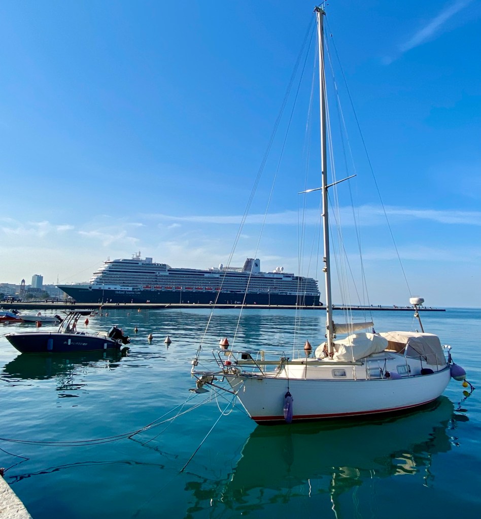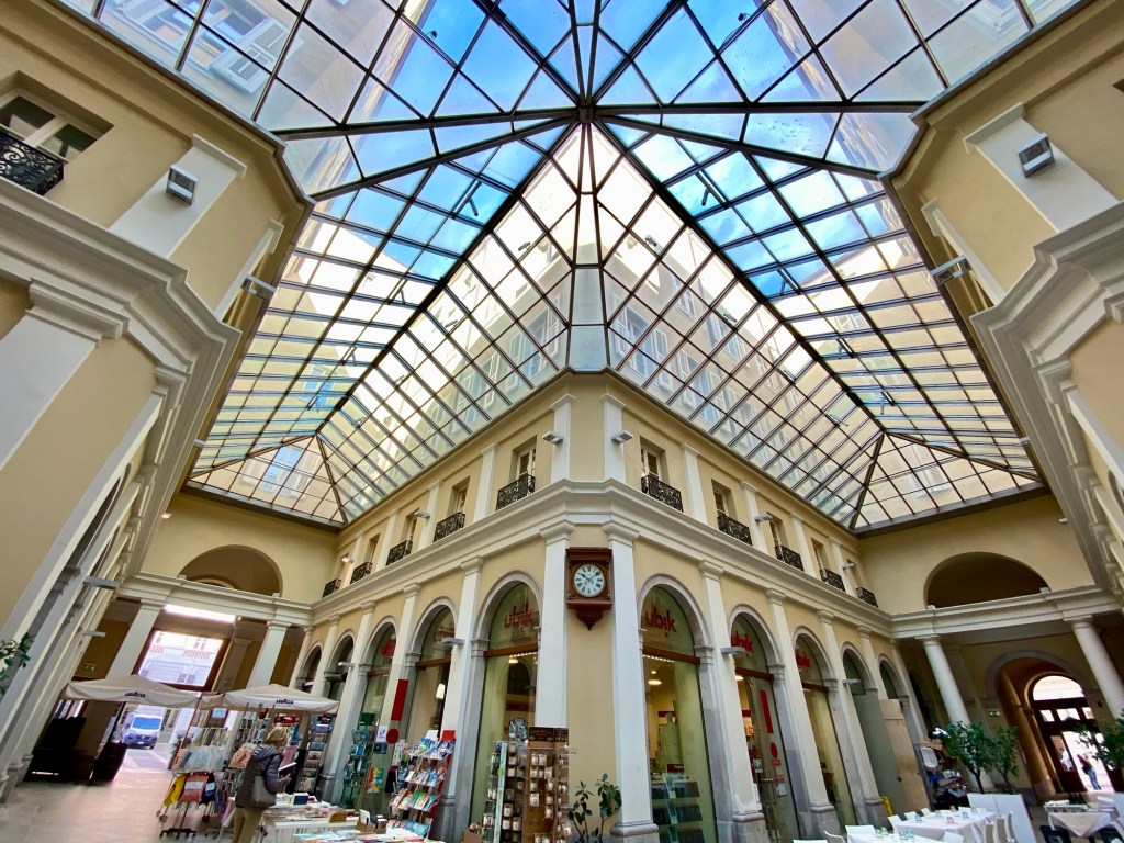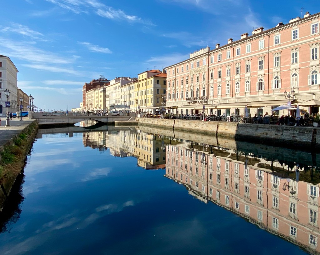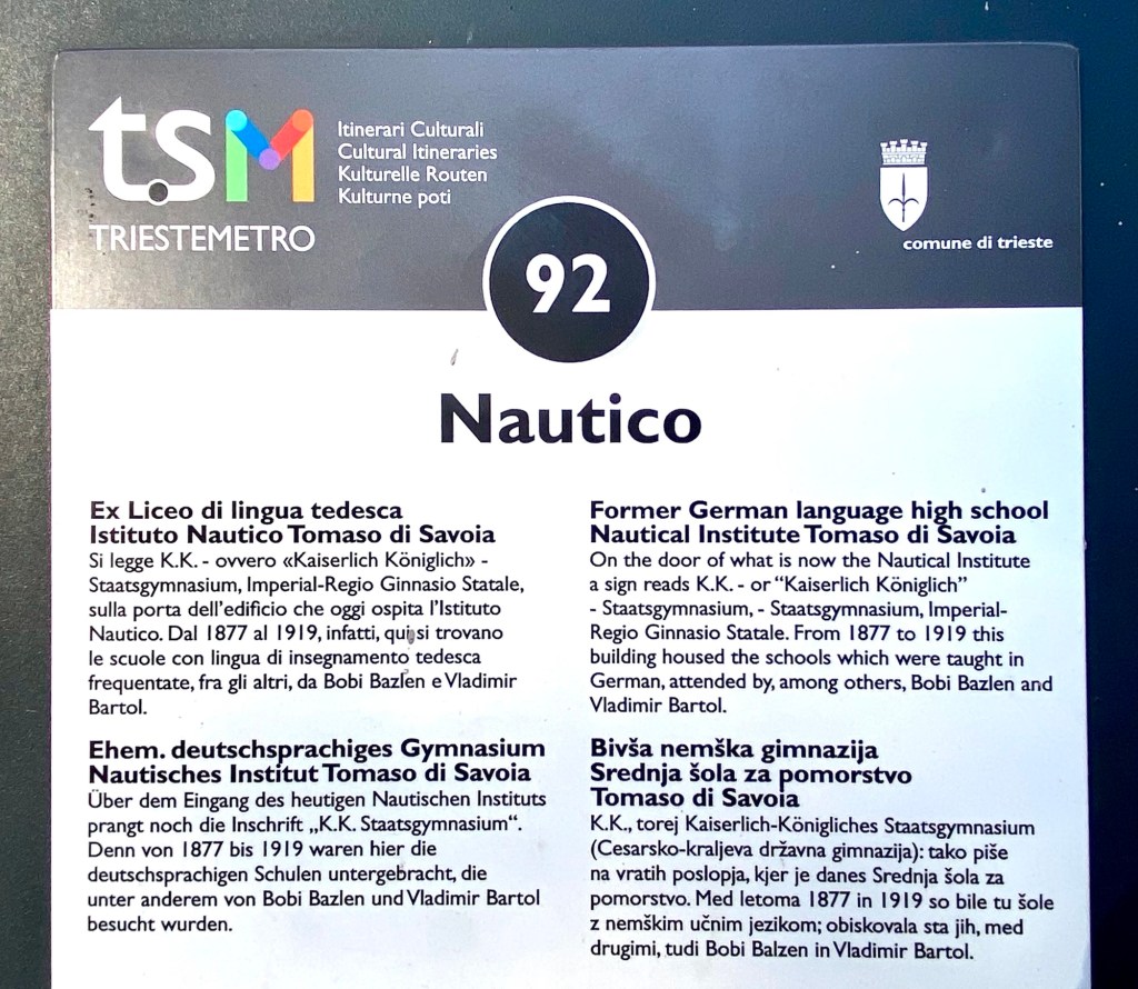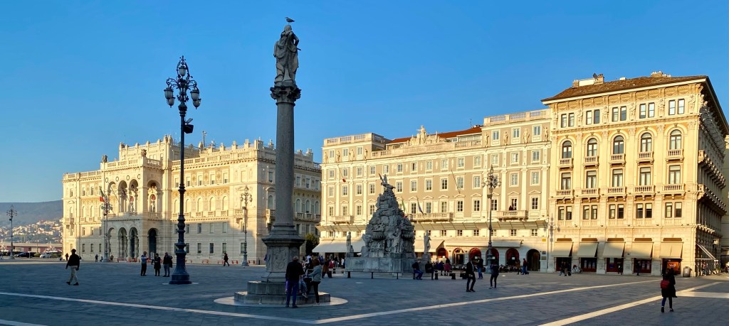 Triest ist eine Stadt der Bücher …Eine Passage in RathausnäheDas Denkmal Sterbender Krieger (1960) stammt von Marcello Mascherini. Mich verzückt immer das Mauerritzengrün 😄ImpressionenJetzt muss ich mich erstmal erholen … wie ??? Ich fahre Bus kreuz & quer durch die Stadt … das Tagesticket kostet 3.25 € !!!!Ein kleines, aber feines Amphi-Theater 👍Und dann kraxele ich eine andere Treppe wieder runter 😎Die Basilika San Silvestro ist die älteste Kirche in Triest, sie wurde im 12. Jh. im romanischen Stil erbaut. Im inneren sind noch Fresken aus dem 14. Jh. erhalten. Nach der Schließung vieler katholischer Gotteshäuser durch Kaiser Josef II. von Österreich wurde sie 1784 an die Evangelische Gemeinde H. B. verkauft,Dreissig Meter neben dem Hotel geht es diese Treppe hoch ….Mir gefallen die Schornsteine hier sehr gut 😄Alle Fotos von Triest habe ich bei Spaziergängen rund um das Hotel (etwa 3 km Radius) gemacht !!!Das RathausDa ist sie nochmal …Griechisch-orthodoxe Kirche San Nicolò – Nach der Trennung der beiden lokalen orthodoxen Gemeinden wurde eine Kirche mit Blick auf den Golf erbaut, um die Verbundenheit der Glaubensgemeinschaft mit dem Mutterland und der Quelle ihres erfolgreichen Handels – dem Meer – zu unterstreichen. Sie wurde 1787 eingeweiht und um 1820 von Matteo Pertsch im klassizistischen Stil neu gestaltet.Eine der beiden Orthodoxen Kirchen der StadtIch wusste nicht, dass es schwarze Tauben gibt ….Die beiden parken genau davor 😄Eines der altehrwürdigen Kaffeehäuser – im 1825 eröffneten Café ist noch ein Teil der Stuckarbeiten und der Wiener Atmosphäre des 19. Jh. erhalten. Es war das erste Lokal der Stadt, in dem Eis serviert wurde: In einem Brief an seine Freundin Nora Baldi schwelgt Umberto Saba 1953 in Erinnerungen an „köstliches Pistazien-Eis, das man heute auf der ganzen Welt – wie ich glaube – vergeblich sucht.“Die „Nieuw Statendam“ der Holland America Line (etwa 3x so gross wie die Amera)Nicht nur in Venedig, nein auch hier beginnt der Protest gegen die Kreuzfahrer 😯Oh … ein neues Kreuzfahrtschiff😋😋😋Besonders prägend für die Entwicklung der Stadt waren die mehr als 500 Jahre Zugehörigkeit zur Habsburger Monarchie, in die der enorme wirtschaftliche und kulturelle Aufstieg des „kleinen Wien an der Adria“ fällt. Nach dem Ersten Weltkrieg kam Triest zu Italien.Am Canale Grande von TriestDer Blick aus meinem Fenster – genau hier beginnt die Altstadt – Zeitgeist auf antiken Fundamenten Urban Hotel Design Hier spürt man den Atem der Geschichte und zugleich den Puls der Zeit. Das Designhotel des 21. Jh. profiliert sich mit kühl gestyltem Komfort und eröffnet durch einen gläsernen Fußboden in seinem Frühstücksraum die Aussicht auf seine römischen Fundamente.Tolles Frühstück (€ 12)Das Einzelzimmer € 82 👍Mein Hotel mitten im Zentrum – der rote Teppich wurde extra für mich ausgerollt 😃😃😃 – unten rechts = Glasboden, das Hotel steht auf römischen Ruinen 😯😯😯Das Wetter ist freundlich 😄Strassenstände an vielen Stellen, weniger richtige Märkte, sind mir begegnet …Die Treppe der Via Ciamician bietet einen der beliebtesten und am meisten fotografierten Ausblicke auf den Golf von Triest. Ursprünglich hieß die Straße Via degli Armeni. Grund dafür war die in diesem Bezirk stark vertretene armenische Gemeinde, zu der auch der Chemiker und Wegbereiter der Solarenergie Giacomo Ciamician (1857-1922) gehörte.Die Häuser in Triest sind grandiosDas Sissi-Denkmal am Hauptbahnhof, sie hat hier ihre Schiffsreisen nach Korfu & Madeira begonnen – Triest war der einzige Hafen der Habsburger am Mittelmeer Seit den 1960er Jahren ist Triest durch seine vielen internationalen Organisationen und Einrichtungen einer der wichtigsten Forschungsstandorte Europas, eine internationale Schul- und Universitätsstadt und hat einen der höchsten Lebensstandards unter Italiens Städten.Einpaar erste Eindrücke Triest ist im Aufbruch. Am Aufblühen. Seit das Anlegen von Kreuzfahrtschiffen im 160 Kilometer entfernten Venedig eingeschränkt wurde, kommen immer mehr Dampfer mit Reisenden hier an. Der Golf von Triest, der sich vor der weitläufigen Piazza dell’Unità d’Italia erstreckt, ist wie gemacht dafür: Das Meer ist hier rund 15 Meter tief.Die Stadt ist wunderschön Schön und kultiviert, ist Triest die kosmopolitischste Stadt Italiens. Überall ist die glorreiche Habsburger Vergangenheit zu fühlen. In ihr kreuzen sich Sprachen, Völker und Religionen, die sie immer noch auszeichnen und ihre mitteleuropäische und zugleich mediterrane Seele erahnen lassen.
