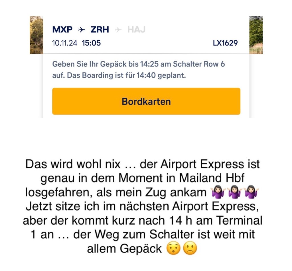 Mein Koffer ist da & die Reise beendet 🌴Ein toller Sonnenuntergang…. über den Wolken ….Auf dem Anschlussflug nach Hannover gibt es ein leckeres Abendessen 👍👍👍Wunderbare Sicht… und die Alpen Ein traumhafter Flug über die Oberitalienischen Seen …Ist richtig spannend ….Tja … und dann sowas 😯Sonntag früh um 07.07 h beginnt meine Rückreise via MailandDas ist die andere Orthodoxe Kirche
