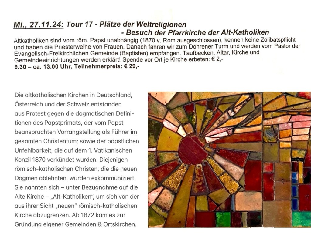 Sehr stimmungsvoll !!!Tibetisch mit Untertiteln …Ein herzerwärmender Film 😃…. und dann war ich die Tage im Kino 👍Spruch des Tages… und ich lasse es mir gut gehen bei Brigitte, der Waldfee … sie hat für mich gekocht: Kürbissuppe, Braunkohl & Brägenwurst sowie eine Creme aus Erdnussbutter auf Florentinerbett mit SchokoCrossieTopping 😋😋😋😋DAS hat mich erfreut 😃Blümchen im Haus ist immer etwas feines 😄Mein Cousin kommt vorbei und bringt mir von seinen frisch aus Spanien gelieferten Orangen 😄👍Ich bin am Thema dran … aber ich habe einen Durchhänger …. bitte bleibt mir gewogen … es geht in wenigen Tagen weiter 🎄🎄🎄Hmmm – Karin hat Dubai-Schokolade ausprobiert – ich hab ein Päckchen bekommen – ist ihr sehr gut gelungen 👍Spruch des TagesEs war ein wunderbarer Abend 👍Die Jungs waren Klasse !!!!Herbst-ImpressionHier habe ich mich sehr wohl gefühlt …Auch hier wird erst getauft, wenn man sich selbst für seinen Glauben entscheiden kann …Die Cafeteria im EingangsbereichMan wird einmal komplett untergetaucht bei der Taufe, die findet erst statt, wenn sich der Täufling selbst dafür entscheiden kann …Das grosse Taufbecken liegt unter 3 Platten versteckt mitten im RaumInteressante ArchitekturBrabeckstrasse in Kirchrode …Mal wieder mit Beckmann Busreisen unterwegs, eine Stadtteiltour mit Frau EckardtSpruch des Tages… und Garten …Impressionen aus ihrem Haus …Heute habe ich Gaby, meine ehemalige Kollegin besucht, wir haben Kränze gebastelt 👍Sooo sieht unsere Marktkirche fürs erste aus 🥲Eine interessante Doku… vor ein paar Tagen …Die Sonne scheint 😄👍Heute Nachmittag: Wolken über LindenHeute morgen, die aufgehende Sonne spiegelt sich …