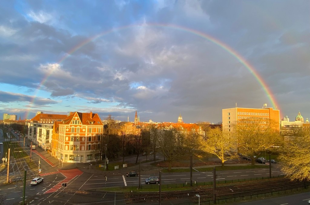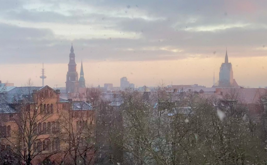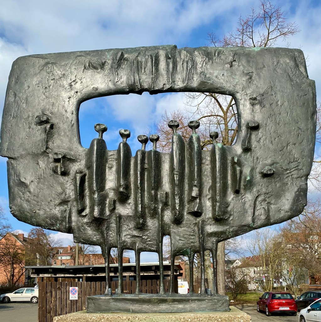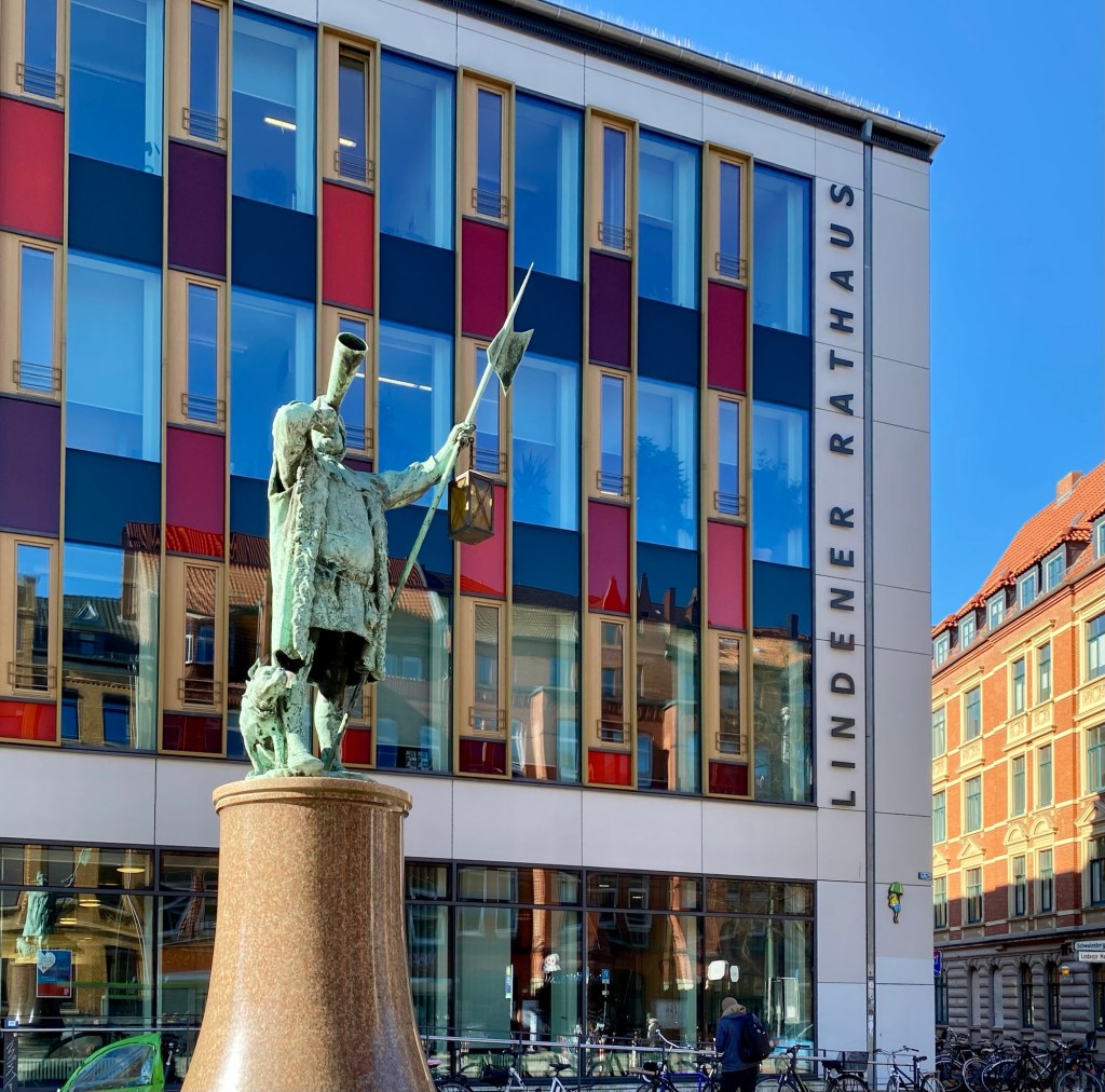 Das Kunstwerk am Turm des Gotteshauses ist ein echter Hingucker: „Triptychon“ des hannoverschen Künstlers Sebastian Peetz. Die drei Planen sind jeweils 30 Meter hoch und bis zu 20 Meter breit. Insgesamt bringen sie 1241 Quadratmeter Kunst an die Kirche.