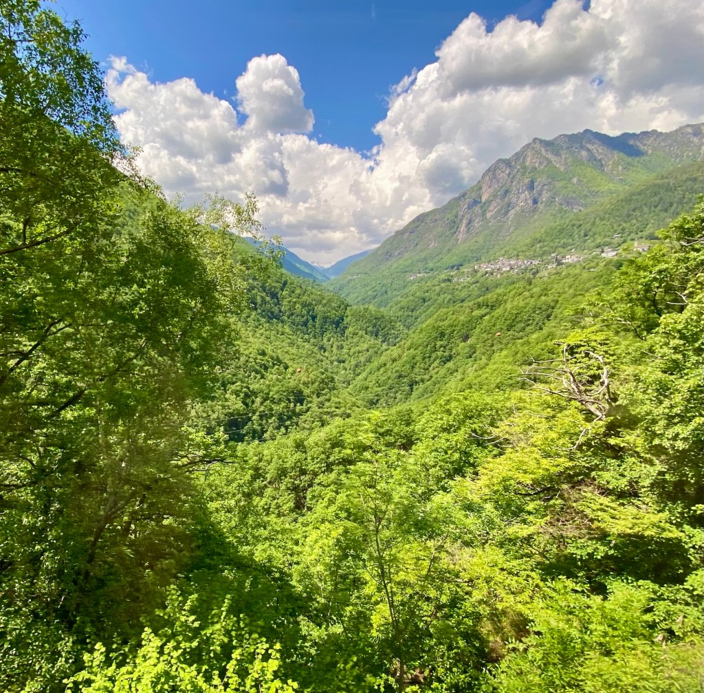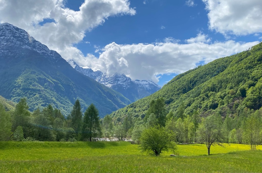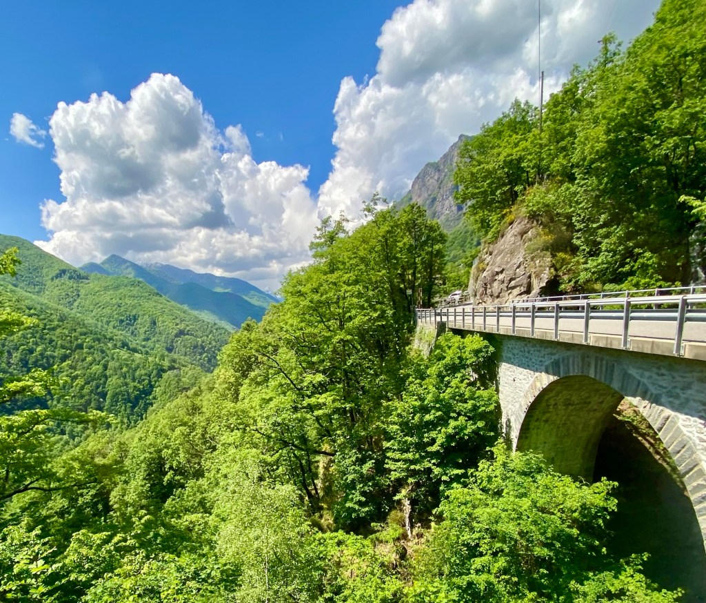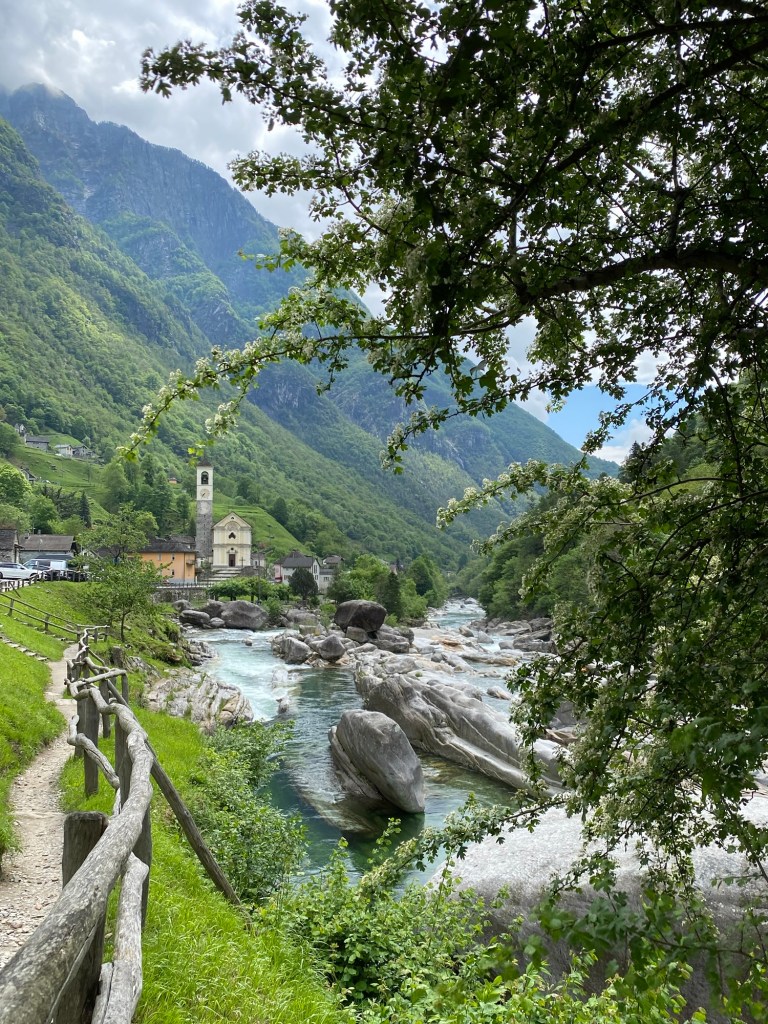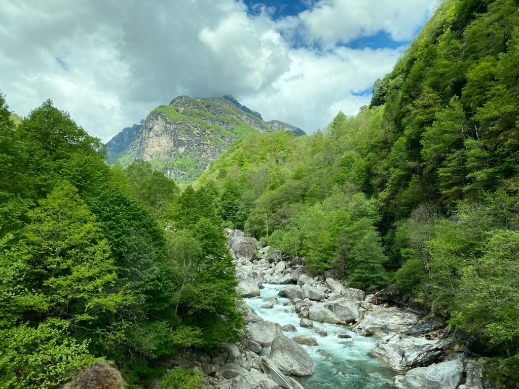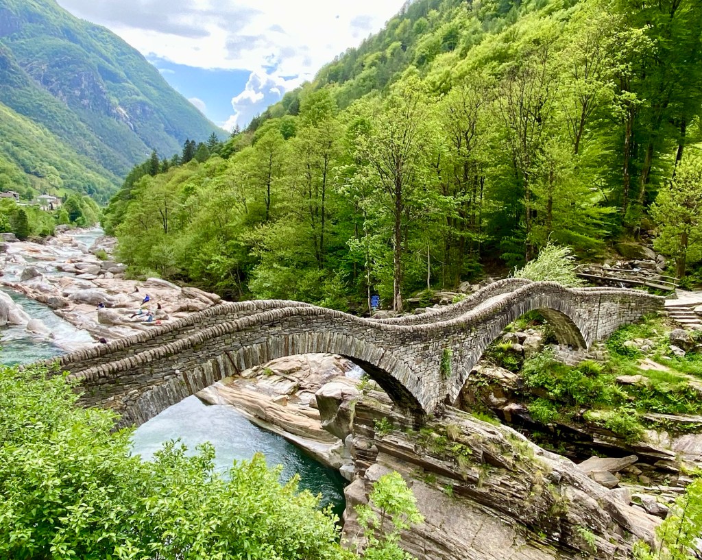 Das Herzstück des Tals ist der Fluss Verzasca mit seinen feingeschliffenen Schluchten und tiefen Becken, die im Sommer zum Baden einladen. Dieses magisch helle Grün der Verzasca: Wie flüssige Jade sucht sich das Wasser seinen Weg durch die ausgewaschene Felslandschaft.