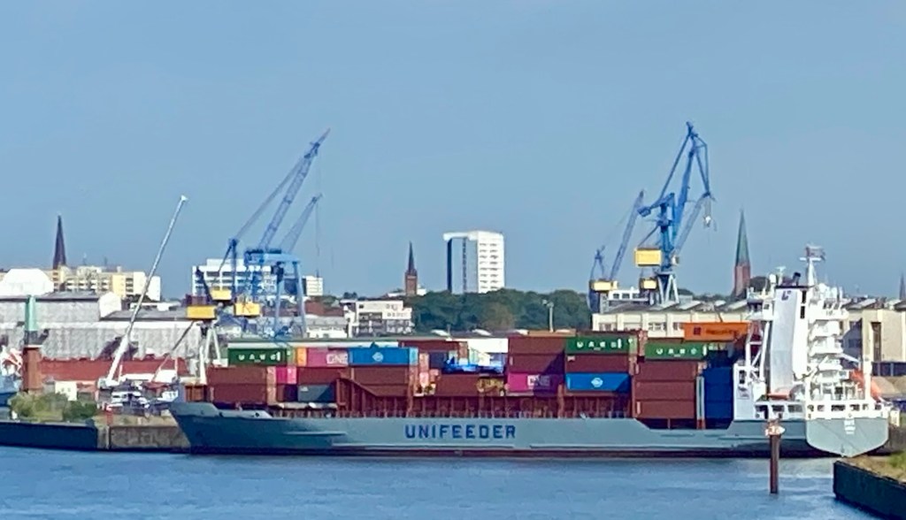 Der Köhlbrand ist ein Mündungsarm der Süderelbe in die Norderelbe. Er ist die Hauptzufahrt zu den Harburger Häfen und zum Containerterminal Altenwerder. Das untere Foto habe ich vor 2 Monaten auf der Fahrt nach Jütland gemacht …