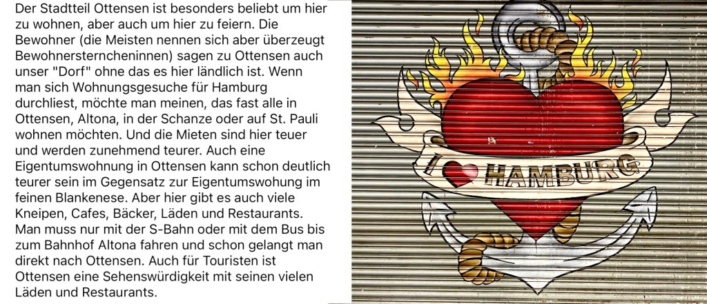 Die Internationale Gartenschau (IGA) 2013 fand auf der Insel Wilhelmsburg statt. Sie verwandelte ein großes Gelände von 100 Hektar in die heutige grüne Parklandschaft des Wilhelmsburger Inselparks. Die IGA 2013 war ein bedeutendes Infrastrukturprojekt, das die Insel durch neue Brücken erschloss und zu einem sozialen Zusammenwachsen des Stadtteils beitragen sollte. Es entstanden neue Wohnviertel, Wilhelmsburg wurde enorm aufgewertet …. Ich habe damals mit einer Frauengruppe die IGA besucht …