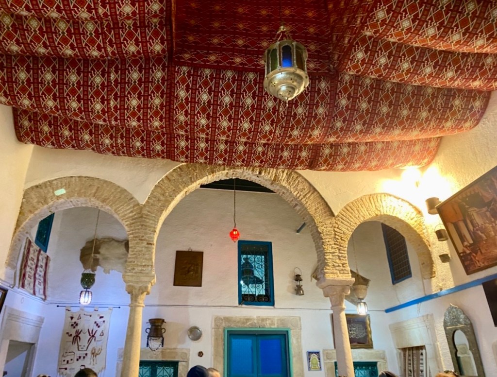 Die Decke ist ein nie zuvor gesehener Triumph der Holzschneidekunst. Die Rahmen, die von den nordafrikanischen Schreinern in aufwendiger Kleinarbeit geschnitzt werden, enthalten waben- und Stalaktit förmige Strukturen. Diese werden anschließend von ägyptischen Künstlern ausgemalt und zeigen weltliche Motive wie Freiheit, Tanz, Freude, Musik oder Spiel.